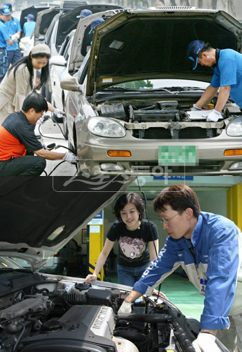 뜨거운 한여름 장거리 주행을 하게 되면 타이어에 무리가 간다. 최소 3시간에 한 번 10분 이상 휴식을 취해야 타이어 온도 상승으로 인한 펑크 사고를 방지할 수 있다. (사진 위) 여름 휴가철 여행을 떠나기 전에는 반드시 브레이크, 배터리, 타이어, 와이퍼 등 기본적인 차량점검을 마쳐야 예기치 않은 사고를 예방할 수 있다. 휴가철을 앞두고 시민들이 무료 점검을 받고 있는 모습. 스포츠동아 DB