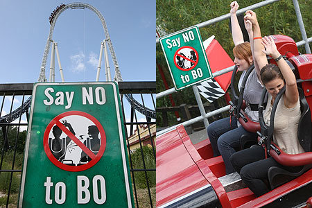 “팔을 올리지 마시오” 롤러코스터를 탈 때 반드시 양팔을 내리고 있어야 하는 놀이공원이 화제다. 영국 ‘소프 파크’는 최근 롤러코스터 앞에 ‘옆사람에게 ‘내려’라고 얘기하세요(Say No to BO)’라는 표지판을 설치했다. 이용객들이 롤러코스터에서 팔을 올렸다 내렸다 할 때마다 암내가 진동했기 때문. 여름철 땀 때문에 암내가 심해지자 이같은 표지판을 설치하게 됐다. 단 29도가 넘는 날에만 규칙이 적용된다. 규칙을 어기고 팔을 계속 올린다면 놀이공원에서 쫓겨난다고. 관계자가 “롤러코스터를 타면 긴장되기 때문에 땀이 더 나고, 암내가 더 심해진다”며 “데오드란트 사용을 부탁한다”고 말하자 누리꾼들은 ‘팔 내리고 타면 땀이 더 날텐데’, ‘별별 규정이 다 있다’며 재밌어했다.