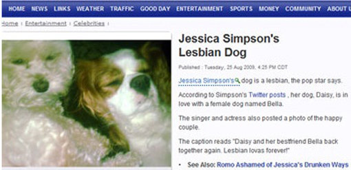 최근 할리우드의 섹시 여배우 제시카 심슨이 자신이 키우는 애완견이 레즈비언이라고 밝혀 화제가 되고 있다.