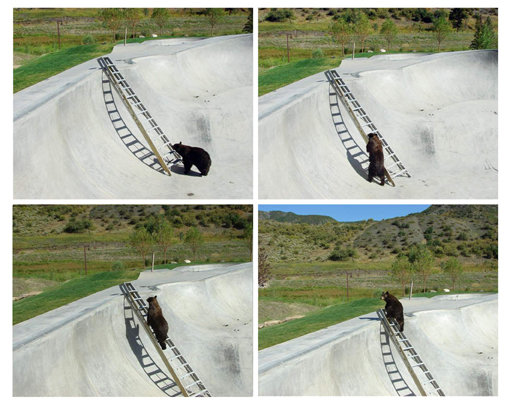 미국 콜로라도의 야산에서 내려온 것으로 보이는 곰은 스케이트 경기장에 들어갔다. 곰은 가파른 경사 때문에 빠져나오지 못하고 그대로 갇혔다.