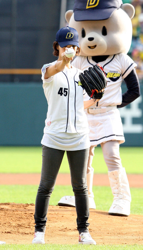 30일 오후 서울 잠실야구장에서 열린 2009프로야구 두산과 KIA의 경기에서 배우 이윤지가 시구를 하고 있다. 잠실ㅣ 박화용 기자 inphoto@donga.com