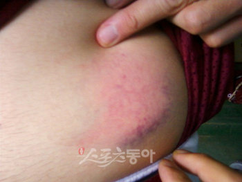 히어로즈 우완 김수경(30)은 30일 롯데전 직전 ‘뭘 굳이 보려하느냐’란 멋쩍음을 담은 미소와 함께 유니폼 상의를 살짝 걷어 올렸다. 왼쪽 복부에 시퍼렇게 멍이 들어있었고, 그 주변은 검붉게 물들어 있었다.