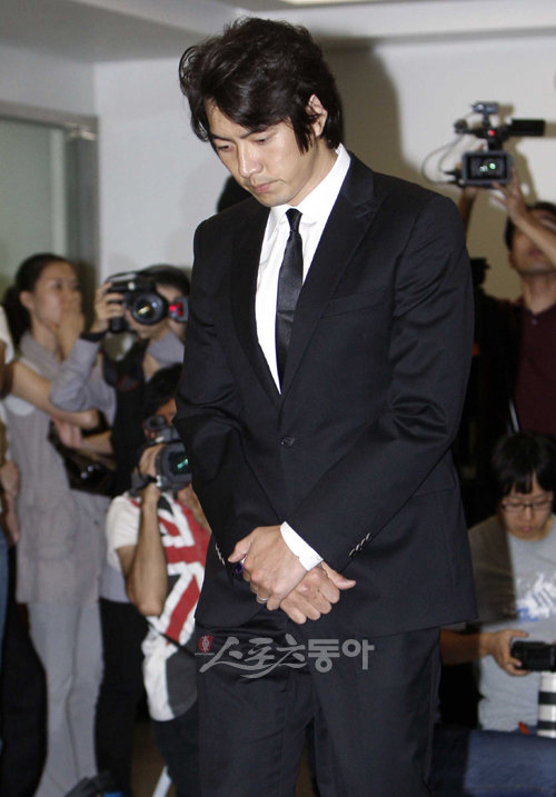 지난해 9월17일 건강검진 결과 위암 판정을 받고 투병 중 사망한 배우 故 장진영의 빈소가 1일 오후 서울 송파구 풍납동 현대아산병원에 마련된 가운데, 동료 배우 송일국이 무거운 발걸음을 옮기고 있다. 양회성 기자 yohan@donga.com
