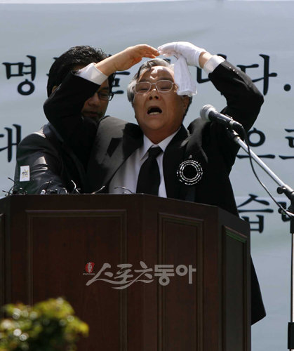 추도식 도중 고인의 아버지 장 모 씨가 ‘딸에게 보내는 편지’를 낭독할 때 갑자기 고인의 영정 사진이 바람을 맞고 떨어졌다. 참석자들은 모두 깜짝 놀랐다. 아버지가 “이제는 아픔 없는 곳에서, 열정을 마음껏 펼치라”고 말하는 순간 영정 사진이 떨어져 많은 이들의 놀라움과 안타까움을 자아냈다.