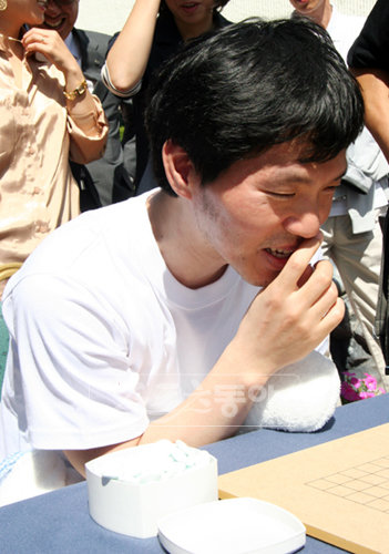 이창호 9단이 오목을 지고 나서 멋쩍게 웃고 있는 사진을 걸어두었으니 마음껏 보고 즐기시길(?).