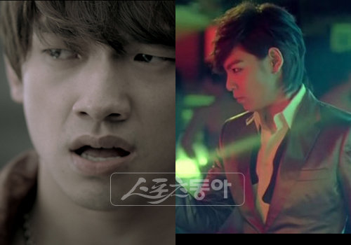 CF 속에서 ‘나쁜 남자’의 이미지를 선보이는 가수 비(왼쪽)와 그룹 빅뱅의 탑.사진제공|SK텔레콤·롯데칠성
