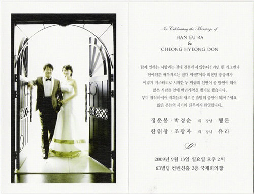 개그맨 정형돈-방송작가 한유라 커플의 청첩장에 누리꾼들의 시선이 집중됐다.