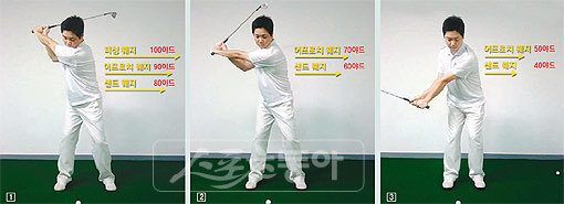 주의할 것은 어떤 샷을 하든 항상 동일한 리듬과 스피드로 스윙을 해야 한다는 것이다. 각 스윙 크기별로 일정한 거리감을 낼 수 있다.