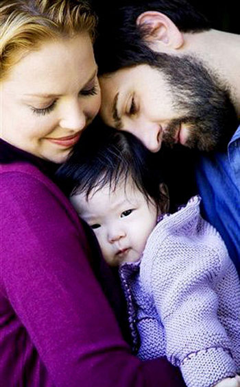 한국인 여자 아기를 입양해 화제를 모은 할리우드 배우 캐서린 헤이글이 아기 사진을 공개했다.