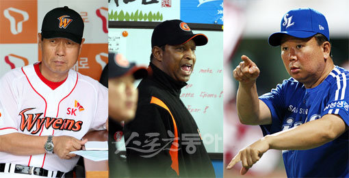 22일부터 페넌트레이스 1,4위를 결정짓는 운명의 2경기가 벌어진다. 이에 따라 필승을 다짐하고 있는 SK 김성근 감독, 롯데 로이스터 감독, 삼성 선동열 감독.(사진 왼쪽부터)스포츠동아DB