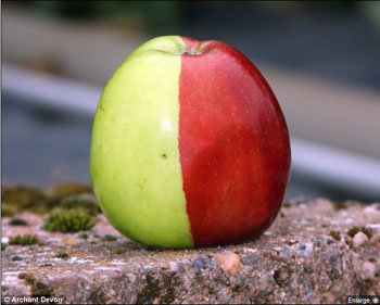 영국에서 발견된 이 신기한 변종 사과는 유전적인 조작 과정을 전혀 거치지 않은 것이라고 한다.