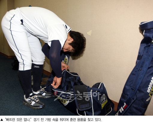29일 잠실구장에서 롯데와 두산의 준플레이오프 맞대결로 화려하게 막을 연 가을 축제. 매 순간 희비가 교차하고, 환희와 탄식이 번갈아 그라운드를 휘감는다. 무대의 주인공이 빠지면 또 무슨 재미랴. 스타를 향한 환호성은 분위기를 띄우는데 제격이다. 두산 팬들의 연호는 ‘김현수’였다. 타격의 달인에게 시선이 쏠리는 것은 어쩌면 당연하다. 수많은 카메라의 플래시 방향도 김현수를 향하고 있다. 지난해 포스트시즌의 부진을 털어내겠다고 이를 앙다문 김현수의 하루를 쫓아가본다.