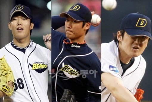 롯데와의 준PO에서 나란히 생애 첫 가을잔치 선발승을 거둔 두산의 투수들. 2차전 승리투수였던 금민철(왼쪽부터), 3차전 홍상삼과 4차전 김선우. 스포츠동아DB