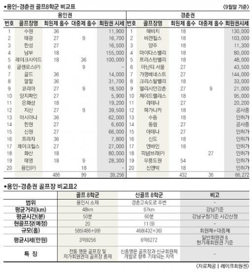 가평-춘천지역과 용인지역의 회원권 시세를 비교하면 이미 골프 8학군이 변하고 있음을 보여주고 있다. 용인지역 골프장 중 10억 원 이상의 초고가 회원권은 남부와 레이크사이드