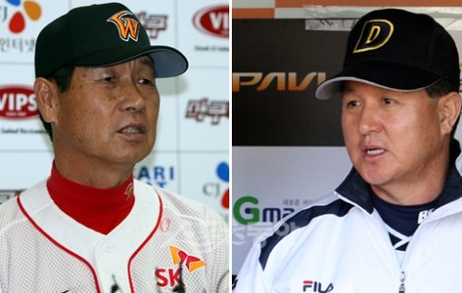 SK와 두산의 플레이오프 5차전은 부상을 입은 SK 투수 윤길현의 출전 여부가 승부에 중요 변수로 작용할 전망이다. 저마다 5차전 승리를 장담하는 가운데 SK 김성근 감독(왼쪽)과 두산 김경문 감독은 자존심을 걸고 마지막 승부에 올인을 각오하고 있다.스포츠동아DB