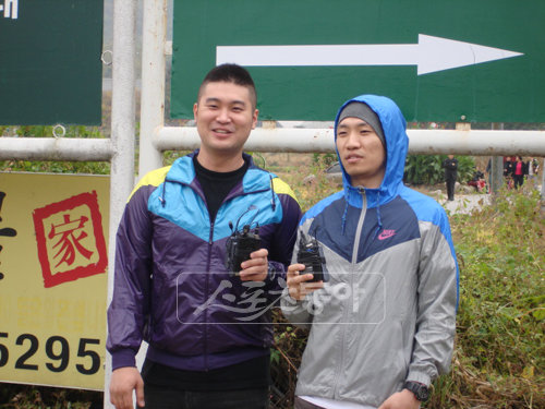 “건강히 잘 다녀오겠습니다” 힙합 듀오 다이나믹 듀오의 멤버 최자(왼쪽)와 개코가 13일 경기도 의정부 306보충대에 동반 입대했다. 두 사람은 24 개월간 현역 복무하게 된다. 사진제공|아메바컬처