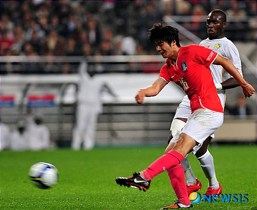 ![14일 오후 상암 월드컵구장에서 열린 하나은행 초청 축구국가대표팀 친선경기 대한민국 대 세네갈의 경기에서 기성용이 전반 첫골을 넣고 있다. [뉴시스]](https://dimg.donga.com/wps/SPORTS/IMAGE/2009/10/14/23438036.1.jpg)