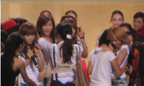 소녀시대의 멤버 제시카가 베트남 공연 도중 갑자기 무대 위로 뛰어 올라온 한 여성 극성팬으로부터 기습포옹을 당했다.
