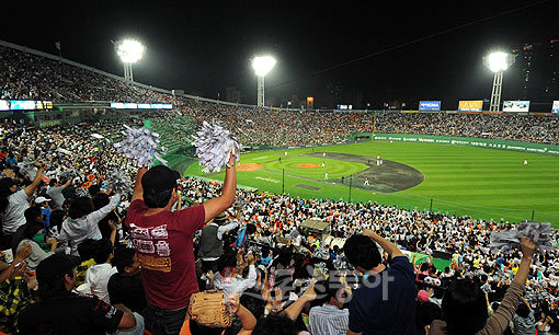 2009 프로야구 롯데자이언츠 대 히어로즈 경기가 18일 부산 사직야구자에서 열렸다. 사직구장 마지막 홈경기에 매진사례를 기록하며 한 시즌 역대최다관중을 기록한 가운데 팬들이 응원을 펼치고 있다. 사직 | 김종원기자 won@donga.com