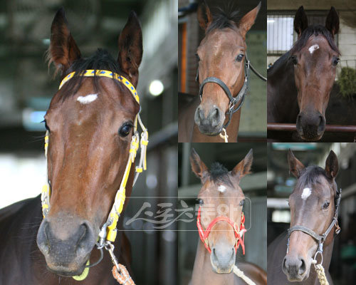 과천시장배에 나서는 도전마들. (왼쪽부터 시계방향) 오마이선, 스페셜볼포니, 허쉬틸트, 청산도, 오로라.사진제공|한국마사회