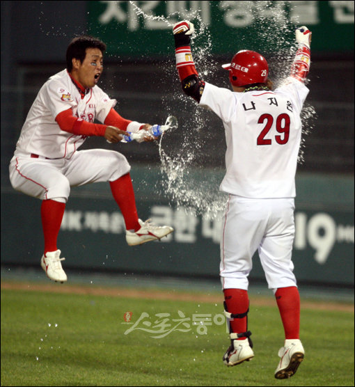 24일 서울 잠실야구장에서 열린 프로야구 SK와 KIA의 한국시리즈 7차전에서 KIA가 9회말 1사 후 나지완의 끝내기 홈런에 힘입어 4-3패로 챔피언에 올랐다. KIA 나지완이 9회말 1사 후 끝내기 홈런을 치고 그라운드를 돌며 포효하고 있다. 잠실ㅣ 박화용 기자 inphoto@donga.com