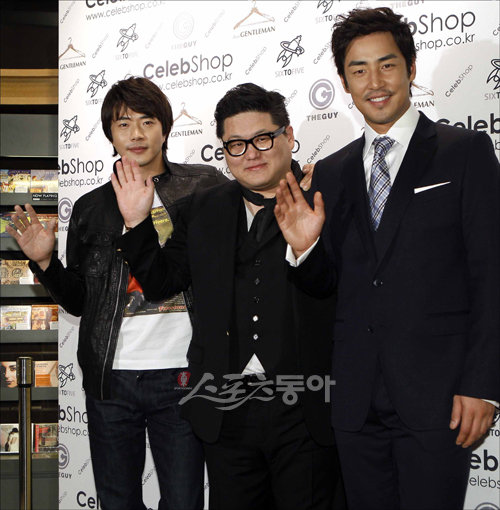 스타의 아이템을 쇼핑할 수 있는 신개념 쇼핑몰 ‘셀렙샵(CELEBSHOP.CO.KR)’ 런칭파티가 28일 오후 서울 압구정 CGV 씨네샵에서 열린 가운데, 배우 권상우, 스타일리스트 정윤기, 김성수(왼쪽부터)가 포토타임을 갖고 있다.