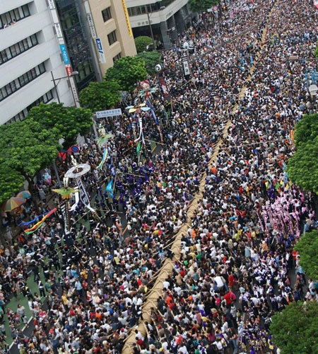 일본에서 세계 최대규모의 줄다리기 대회가 29일 열렸다. 이날 사용되었던 줄의 길이가 세계 기네스 기록을 갱신을 눈 앞에 두고 있다고 한다. 일본 오키나와 나하시에서 열린 이번 대회에는 모두 3만 명이 넘는 사람이 참가했는데, 참가자의 수가 많았던 만큼 줄다리기에 쓰인 줄의 길이도 자그마치 199m나 되었다고 한다. 이 줄을 제작하기 위해 수백명이 동원되었고 전통 방식인 볏짚을 이용하여 만들었다.