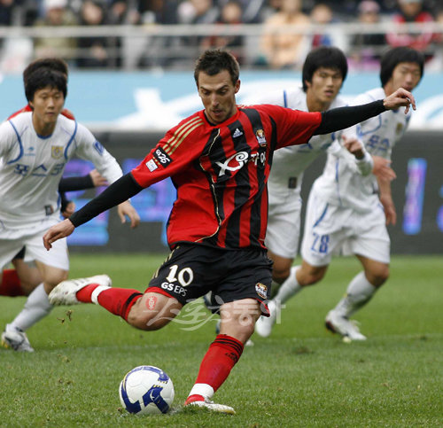 1일 오후 서울월드컵경기장에서 열린 K리그 FC 서울-전남 드래곤즈의 경기. FC 서울의 데얀이 문전슛을 날리고 있다.