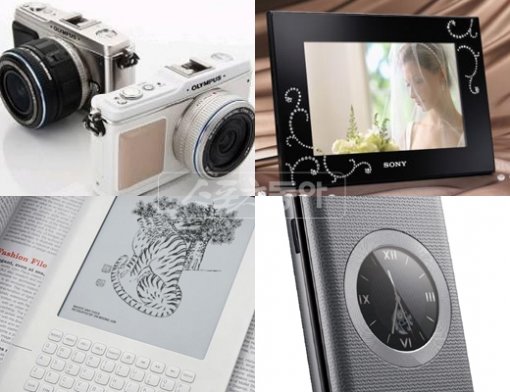 디지털에 아날로그 감성을 더한 디지로그 제품이 인기다. 사진 왼쪽 위부터 시계방향으로 올림푸스 카메라 ‘펜’시리즈, 소니 디지털액자, LG전자 ‘와인폰’, 아이리버 전자책 ‘스토리’. 사진제공 | 각 업체