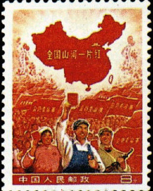 ‘전국산하일편홍(全國山河一片紅·사진)’이라는 이름의 이 중국 우표는 전 국가주석인 마오쩌뚱이 주도했던 문화대혁명이 한창이던 1968년 발행됐다.