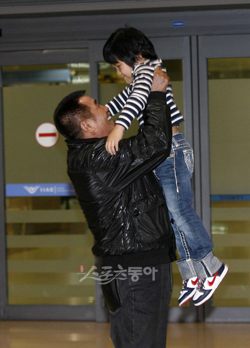 ‘추추 트레인’ 추신수(27·클리블랜드)가 3일 오후 인천국제공항을 통해 귀국했다. 손자를 부둥켜 안은 추신수 부친 추소민 씨.