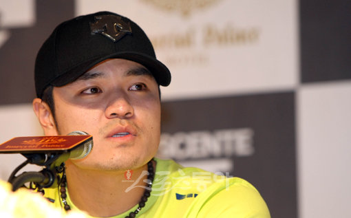 추신수가 4일 공식기자회견에서 기자들의 질문에 답하고 있다. 기자회견 후 곧바로 본가가 있는 부산으로 이동한 추신수는 5일 오전 조성옥 전 동의대 감독의 유해가 안치된 경남 양산 하늘공원묘지 납골당을 찾는다. 김종원 기자 won@donga.com