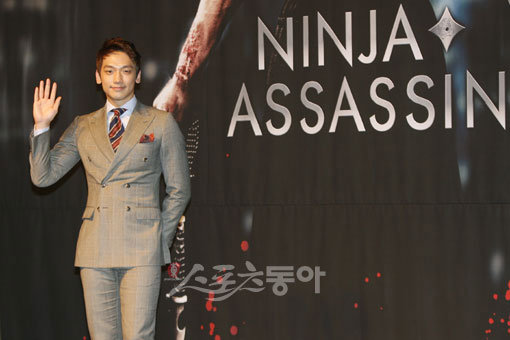 9일 오전 서울 중구 소공동 롯데호텔에서 열린 영화 ‘닌자 어쌔신’ 의 아시아 기자회견에서 주연배우 비(본명 정지훈)가 포토타임을 갖고 있다.