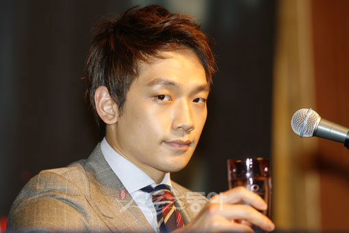 9일 오전 서울 중구 소공동 롯데호텔에서 열린 영화 ‘닌자 어쌔신’ 의 아시아 기자회견에서 주연배우 비(본명 정지훈)가 취재진의 질문을 경청하며 물을 마시고 있다.