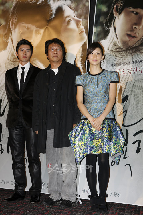 배우 현빈, 윤종찬 감독, 이보영이 13일 오후 서울 왕십리 CGV에서 진행된 영화 ‘나는 행복합니다’ 의 시사회에서 포토타임을 갖고 있다.