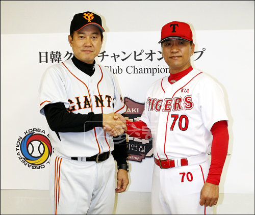 ‘한일클럽챔피언십’을 하루 앞둔 KIA 조범현(49) 감독과 요미우리 하라 다쓰노리(51) 감독이 13일 나가사키 빅N스타디움에서 열린 공식 기자회견에서 날카로운 신경전을 벌였다.