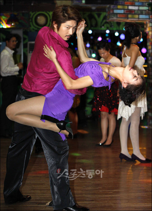 탤런트 이준기(왼쪽)와 윤소이가 16일 오후 서울 강남구 역삼동에 위치한 한 댄스홀에서 열린 MBC 수목 미니시리즈 ‘히어로’(박지숙 극본·김경희 연출) 현장공개에서 역동적인 포즈를 취하고 있다. 양회성 기자 yohan@donga.com