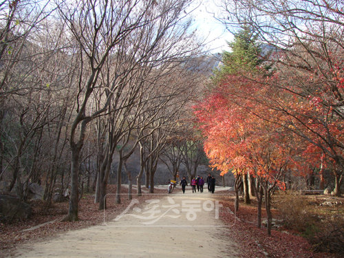 터벅터벅 발걸음을 옮겼다. 11월의 바람이 시리면서도 상쾌하다. 한 번 크게 숨을 들이킨다. 자연의 살아 숨쉬는 바람이 코로 들어와 폐까지 내려가는 느낌이다. 자연은 시각적인 편안함도 안겨 준다. 알몸을 드러낸 나무 가지와 울긋불긋 마지막 빛을 발하는 단풍이 만드는 조화가 일품이다.