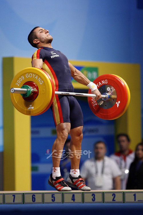 20일 오후 경기도 고양시 킨텍스에서 열린 ‘2009 세계역도선수권대회’ 남자부 62kg급 C그룹 경기 인상 2차시기에서 헤르난데스(스페인)가 힘차게 바벨을 들어 올리고 있다.