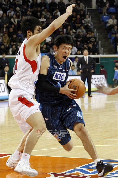 22일일 서울 잠실학생체육관에서 열린 2009∼2010 KCC 프로농구 서울 SK나이츠 대 전주 KCC이지스의 경기에서 KCC 추승균이 SK 이병석의 수비를 피해 골밑 돌파를 시도하고 있다.