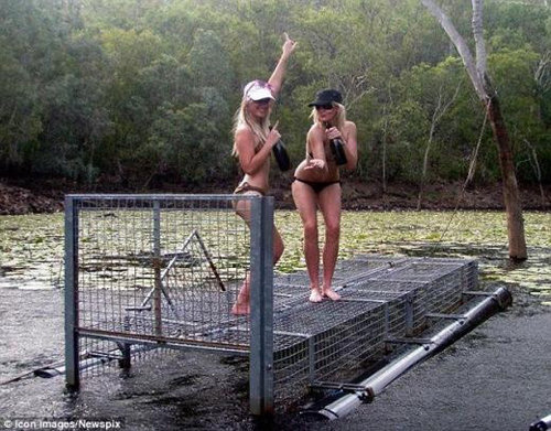 살벌한 악어들이 가득한 악어 우리 위에서 비키니를 입고 술병을 들고 춤을 추며 사진을 찍은 용감한(?) 두 명의 여성이 인터넷에서 화제가 되고 있다.