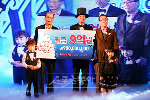 스카이72 골프장(대표이사 김영재)은 22일 나눔 축제 ‘스카이72 러브오픈 2009’ 행사를 열고 자선기금 9억원을 사회복지 공동모금회에 전달했다.