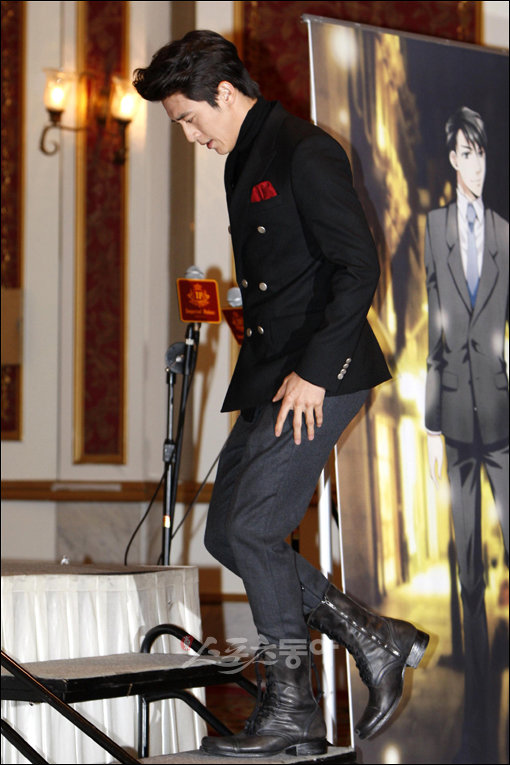 탤런트 고수가 25일 오후 서울 강남구 논현동 임피리얼팰리스호텔에서 열린 SBS 드라마 스페셜 ‘크리스마스에 눈이 올까요?’ (극본 이경희·연출 최문석) 제작보고회에 참석하기 위해 계단을 올라 무대로 향하고 있다.