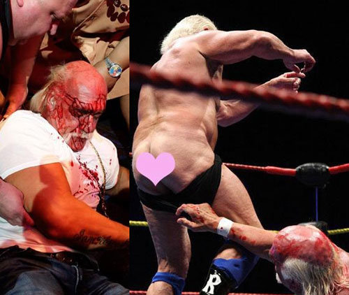 그의 연속적인 반칙으로 결국 바닥에 쓰러진 호건은 릭 플레어의 바지를 잡아당겼다. 이 바람에 릭 플레어의 엉덩이가 훤히 드러나버린 것이다(사진 오른쪽).