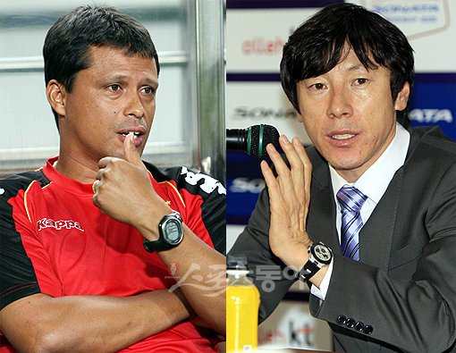 이쯤이면 ‘동상이몽’이란 표현이 딱 어울린다. 29일 포항 스틸야드에서 열릴 K리그 챔피언십 플레이오프를 앞두고 27일 가진 기자회견에서 포항 파리아스 감독(왼쪽)은 “안방 불패”를 외쳤고, 성남 신태용 감독은 “포항전 무패”를 장담하고 나섰다.스포츠동아DB