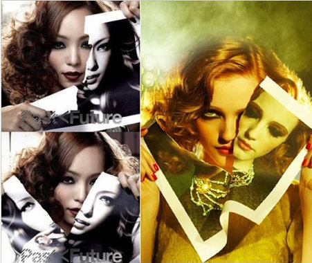 2년 만에 새 앨범을 발표하게 된 아무로 나미에의 재킷사진에는 자신의 사진을 찢고 있는 장면이 담겨 있다.