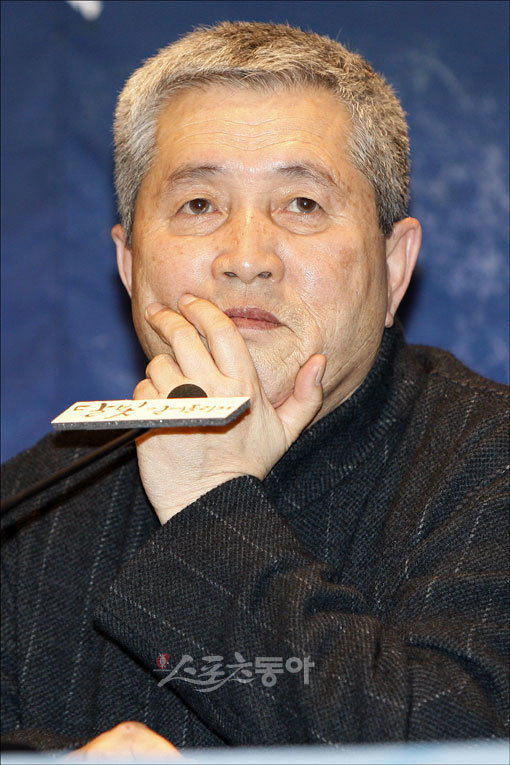 한국 영화계의 거장 임권택 감독이 1일 오전 서울 중구 세종호텔에서 열린 자신의 101번째 영화 ‘달빛 길어올리기’(감독 임권택·제작 전주국제영화제) 제작발표회에서 취재진의 질문을 경청하고 있다.