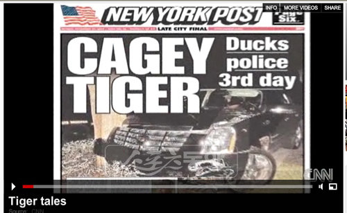 ‘골프황제’ 타이거 우즈의 미스터리는 시간이 흐를수록 증폭되고 있다. 지난달 28일(한국시간) 미 플로리다 주 올랜도 인근 자택에서 벌어진 교통사고부터 우즈의 불륜설 등 미스터리는 꼬리에 꼬리를 물고 있다. CNN 시간별 동향 보도…ESPN 불륜설 등 집중분석