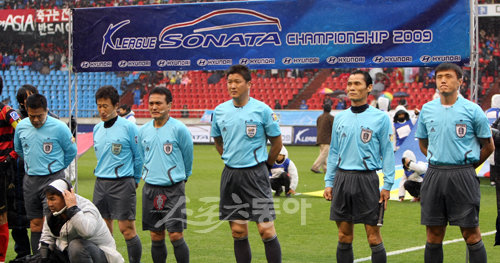 이날 그라운드에는 6명의 심판이 등장했다. 지난 29일 포항-성남의 플레이오프부터 K-리그 사상 처음으로 도입된 6심제는 챔피언결정전에서도 똑같이 주심(이상용)을 비롯해 부심(김선진, 김용수), 대기심(최광보)이 투입됐다. 여기에 추가 부심(이민후, 최명용)이 경기장 양쪽 골대 옆 엔드라인에 위치했다.