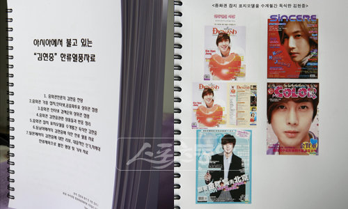 김현중의 대표 팬클럽 가운데 하나인 ‘지후현중앓이’는 ‘아시아에서 불고 있는 김현중 한류 열풍 자료’라는 제목의 자료집을 최근 스포츠동아에 전달했다.